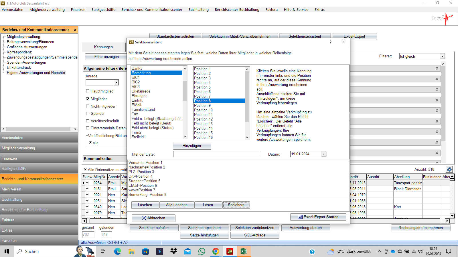 Im Datenexport werden ja viele Felder in der Excel-Tabelle ausgegeben. Wie kann ich diese Ausgabe anpassen? Ich brauche zB neben der Email auch die Adresse der Homepage der Mitglieder. Auch einige Freifelder (mit Berufsbezeichnungen) würde ich gerne exportieren, da ich aus den Daten ein Mitgliederverzeichnis erstellen möchte.
