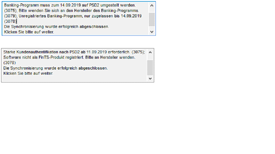 Ab der KW 32 erhalten Kunden, die ein nicht registriertes Produkt verwenden die Meldung "3078 Software nicht als FinTS-Produkt registriert.