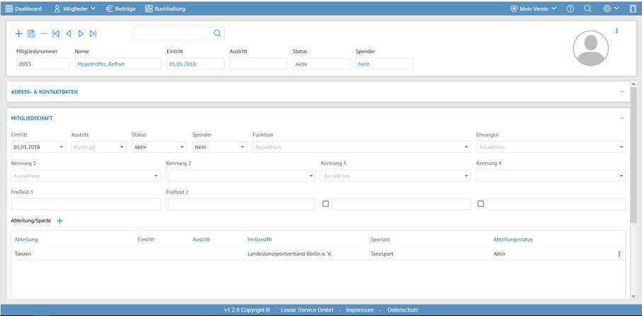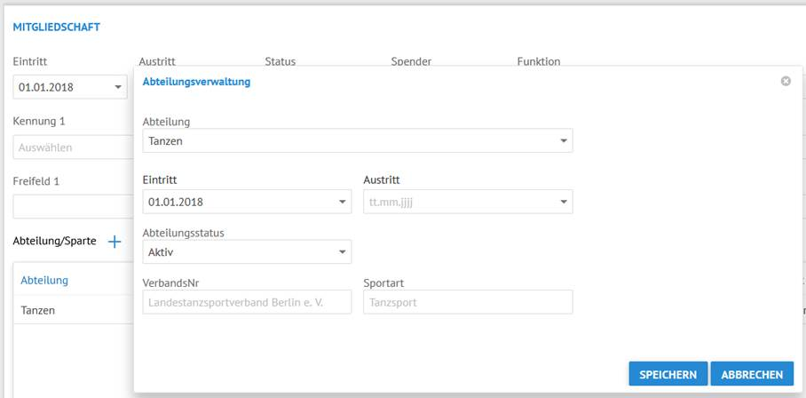 Um die Abteilungs- bzw. Spartenzugehörigkeiten Ihrer Mitglieder zu hinterlegen, gehen Sie folgendermaßen vor: