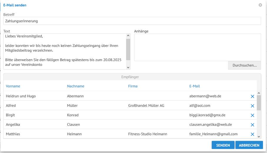 Jedes Mitglied erhält nun die Zahlungserinnerung zugestellt.