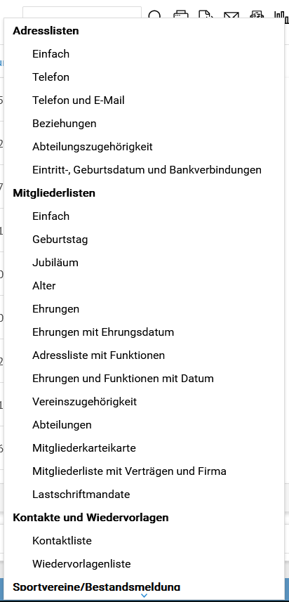 Je nach Liste werden bestimmte Felder der Mitgliederdaten ausgegeben.