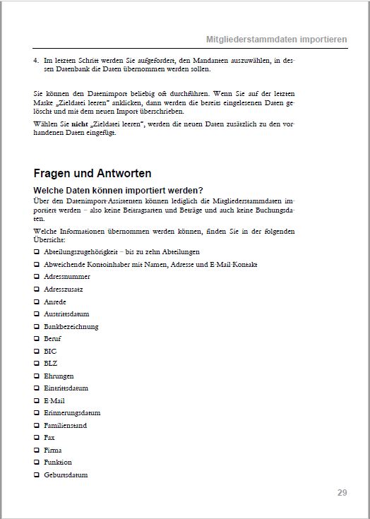 Leider sind der Großteil der Felder zum Import nicht näher erläutert. Man muß doch wissen, wie die Felder hinterlegt werden müssen: z.B. Geschlecht, Versandart, Staatangehörigkeit, Titel, Kennungen etc.