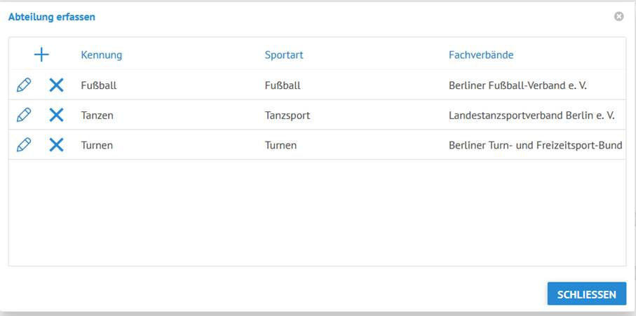 Diese Angaben werden dann automatisch im jeweiligen Datensatz Ihrer Mitgliederverwaltung unter Mitgliedschaft -> Abteilung eingetragen.