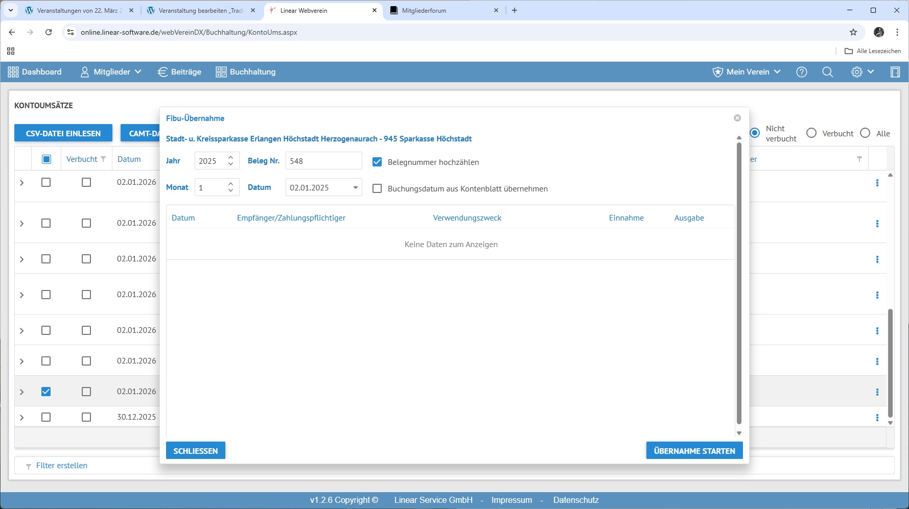 Das Einbuchen der Kontoumsätze für 2025 klappt.