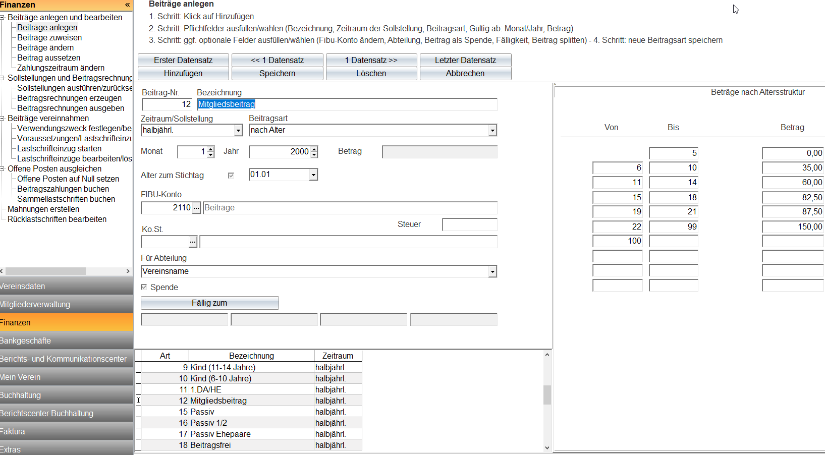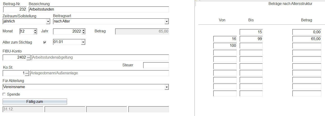 ich kam leider erst jetzt dazu, dies zu testen. Ich habe die Einstellungen wie im Anhang zu sehen eingestellt. Leider wird ein Mitglied, welches im April 2022 11 geworden ist, nach dem Beitrag für 11-jährige berechnet. Das Programm soll jedoch das Alter vom 01.01. nehmen, wo das Mitglied erst 10 Jahre alt war. Ist es ein Problem, dass das Mitglied erst mit 11 Jahren Mitglied wurde?
